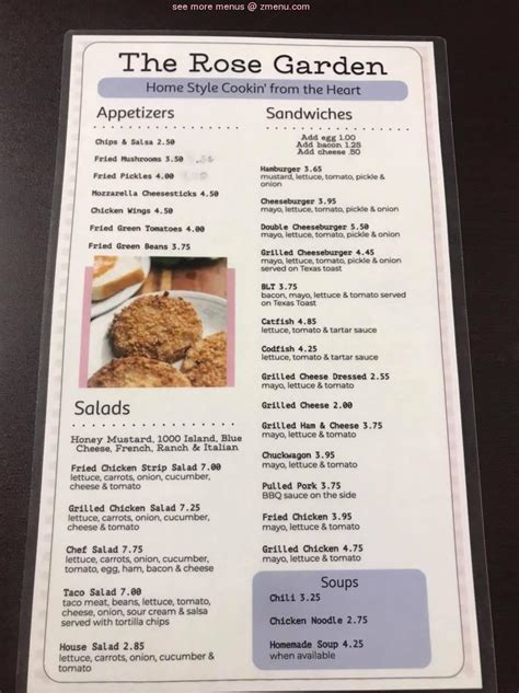 Web The Actual Menu Of The Rose Garden Restaurant.